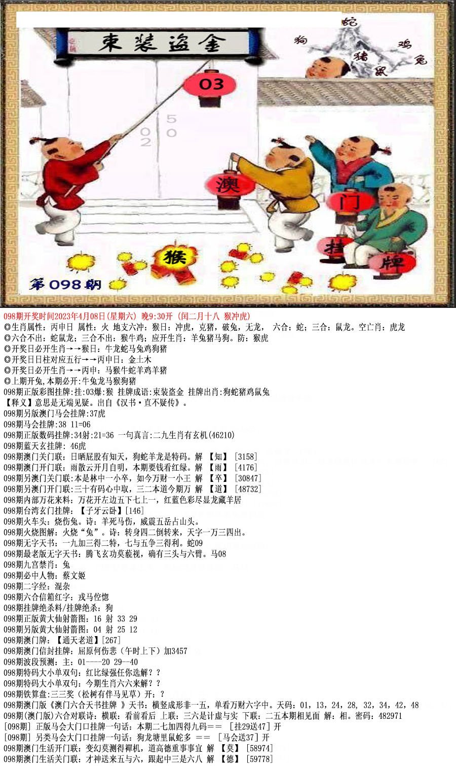 098期开奖时间2023年4月08日(星期六) 晚9:30开 (闰二月十八 猴冲虎))